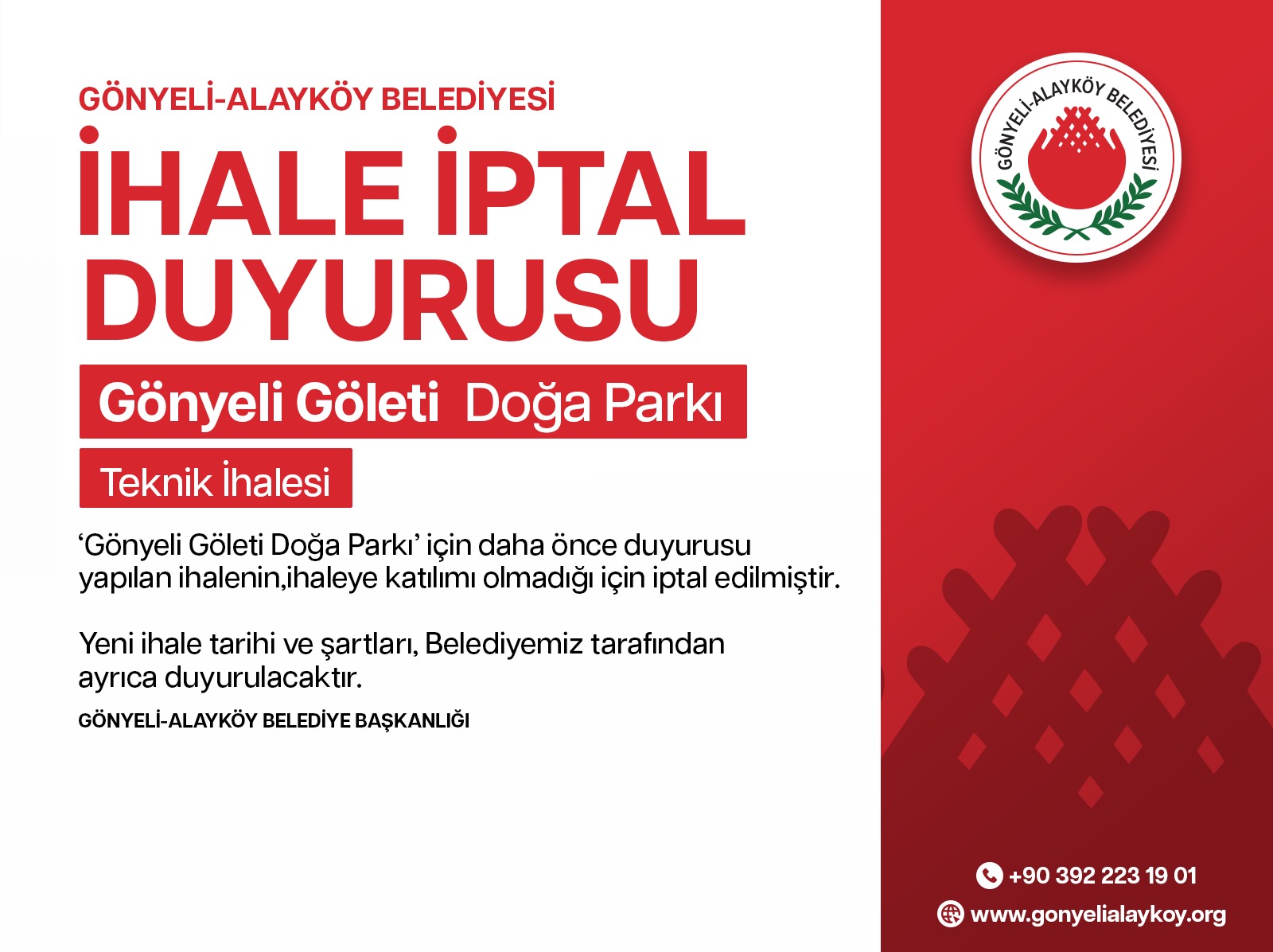 İHALE DUYURUSU – GÖNYELİ GÖLETİ DOĞA PARKI TEKNİK İHALESİ 06/2025