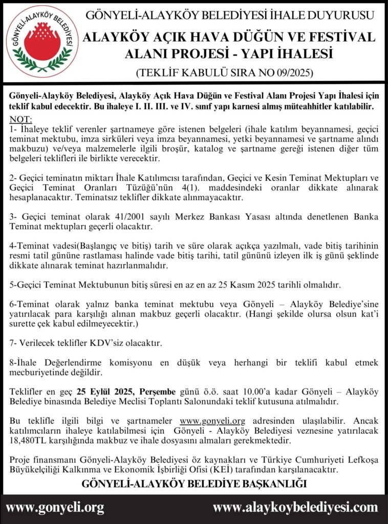 İHALE DUYURUSU – ALAYKÖY AÇIK HAVA DÜĞÜN VE FESTİVAL ALANI PROJESİ
